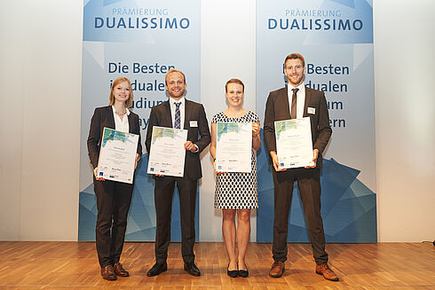 Dem Bewerbungsaufruf von hochschule dual, der Dachmarke des dualen Studiums in Bayern, waren rund 120 Absolventinnen und Absolventen dieses Studienmodells gefolgt. Neben den Studienleistungen zählten für die Jury aus Wissenschafts- und Wirtschaftsvertretern auch außergewöhnlicher Einsatz in der betrieblichen Praxis, ehrenamtliches und soziales Engagement sowie Auslandserfahrung.